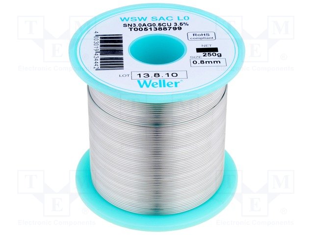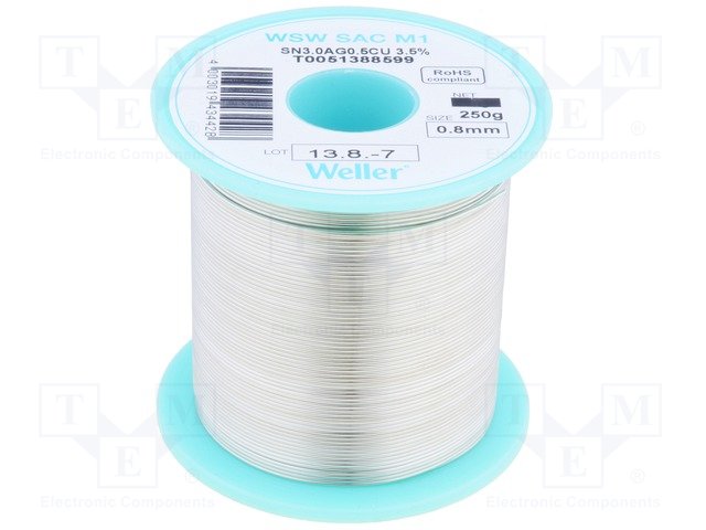 Проволочный припой; Sn96,5Ag3,0Cu0,5; 0,8мм; 250г; 217÷221°C