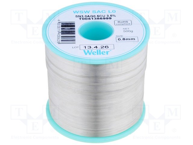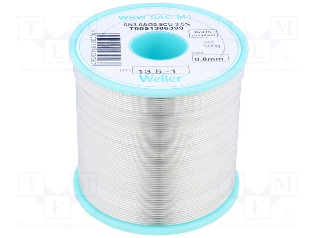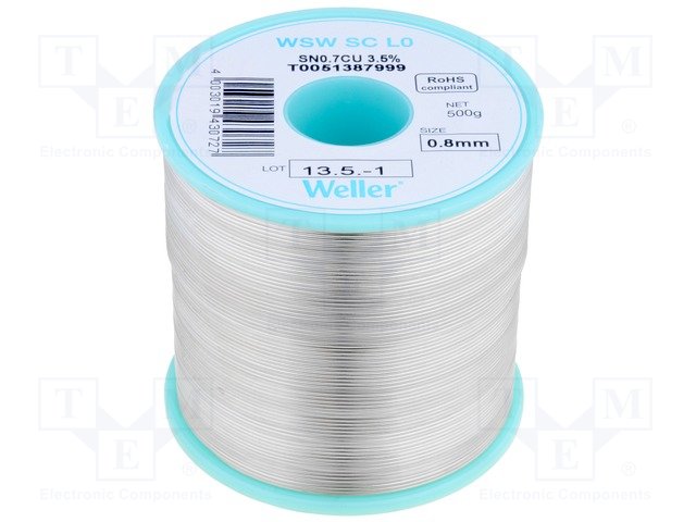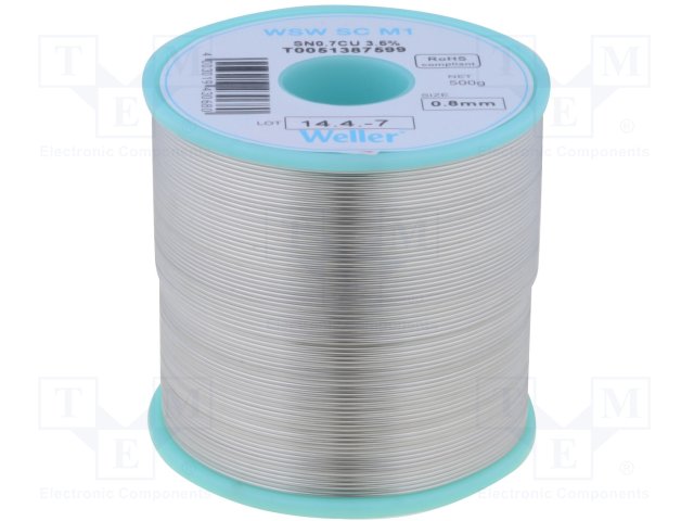 Проволочный припой; Sn99,3Cu0,7; 0,8мм; 500г; не содержит свинца