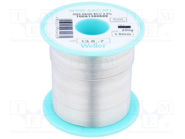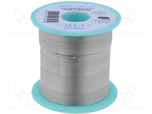 Проволочный припой; Sn96,5Ag3,0Cu0,5; 1мм; 250г; 217÷221°C; 3,5%
