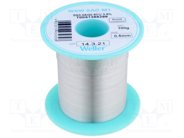 Проволочный припой; Sn96,5Ag3,0Cu0,5; 0,5мм; 100г; 217÷221°C