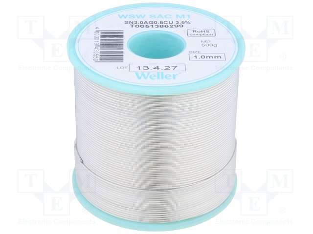 Проволочный припой; Sn96,5Ag3,0Cu0,5; 1мм; 500г; 217÷221°C; 3,5%