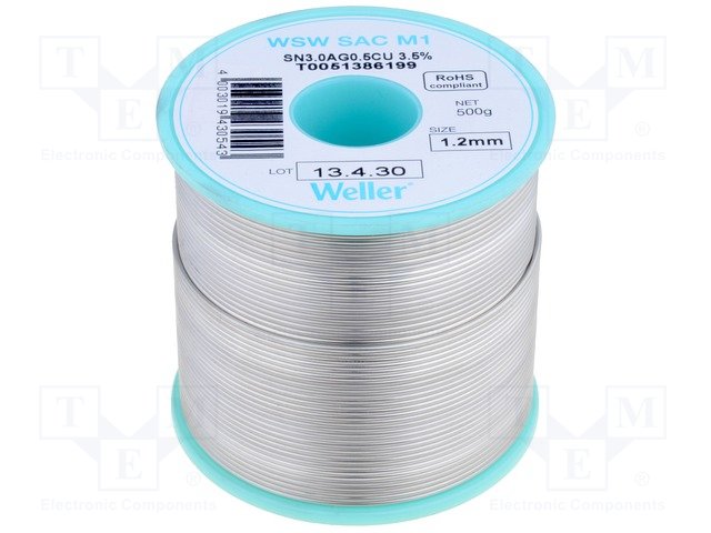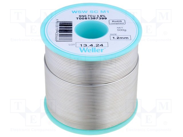 Проволочный припой; Sn99,3Cu0,7; 1,2мм; 500г; не содержит свинца