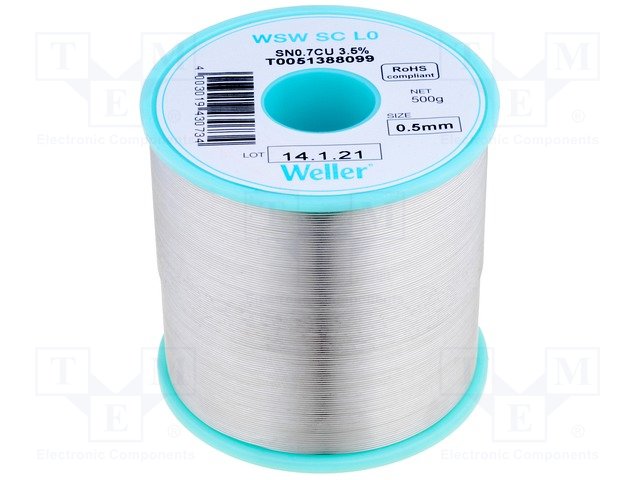Проволочный припой; Sn99,3Cu0,7; 0,5мм; 500г; не содержит свинца