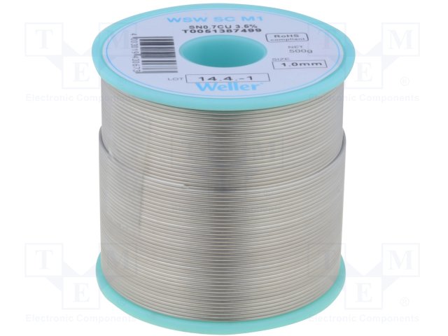 Проволочный припой; Sn99,3Cu0,7; 1мм; 500г; не содержит свинца
