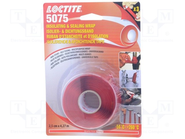 Лента: самовулканизирующаяся; красный; 25мм; L: 4,27м; D: 0,5мм