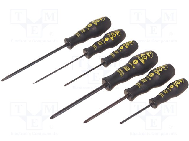 Набор отверток; Кол-во шт: 6; ESD; Наконечник: Phillips,плоская |