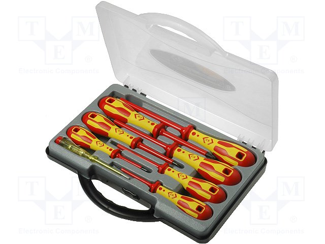 Набор отверток; Кол-во шт: 7; изолированная; Упаковка: кейс; 1кВAC |