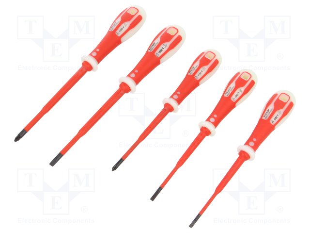 Набор отверток; Кол-во шт: 5; изолированная; 1кВAC |