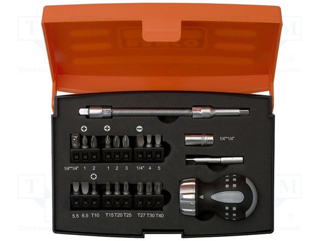 Набор отверток; Вид набора: насадки-биты,рукоятка отвертки |