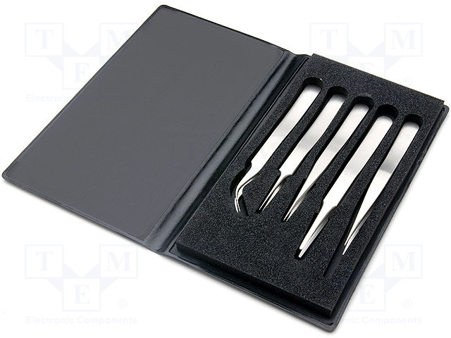 Пинцеты; Кол-во шт: 5; Упаковка: футляр; SMD