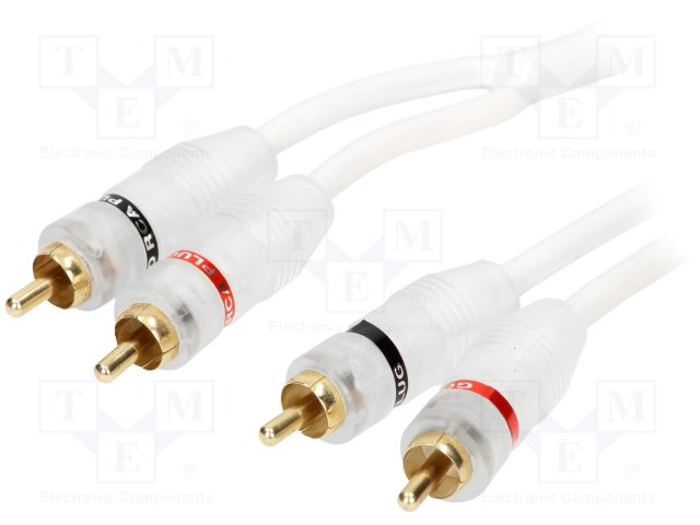 Кабель; для усилителей; гнездо RCA x2,с обеих сторон; 3м; белый |