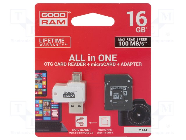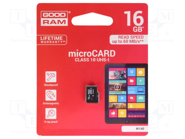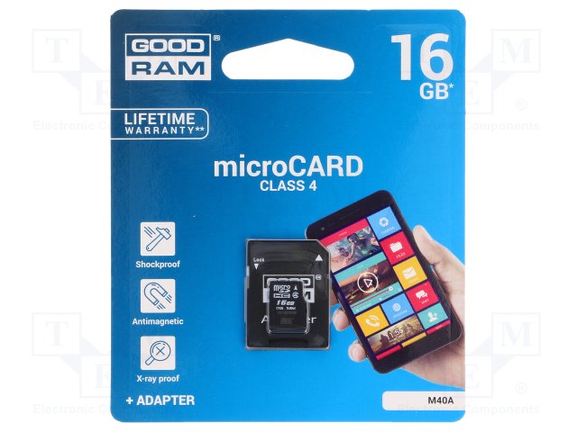 Карта памяти; SD HC Micro; 16ГБ; Считывание: 15МБ/с; Запись: 4МБ/с