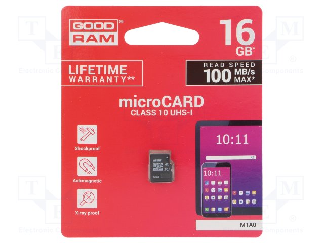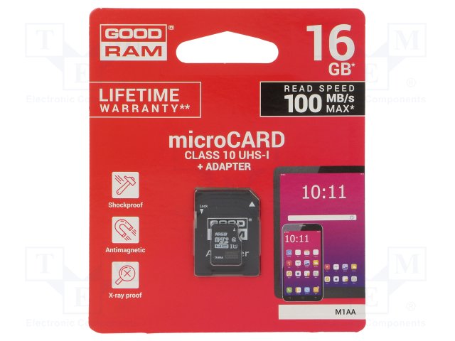 Карта памяти; SD HC Micro; 16ГБ; Считывание: 100МБ/с; UHS I
