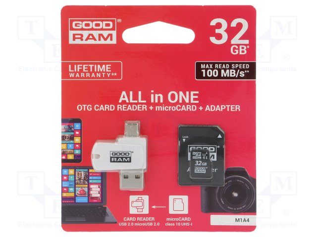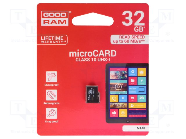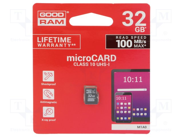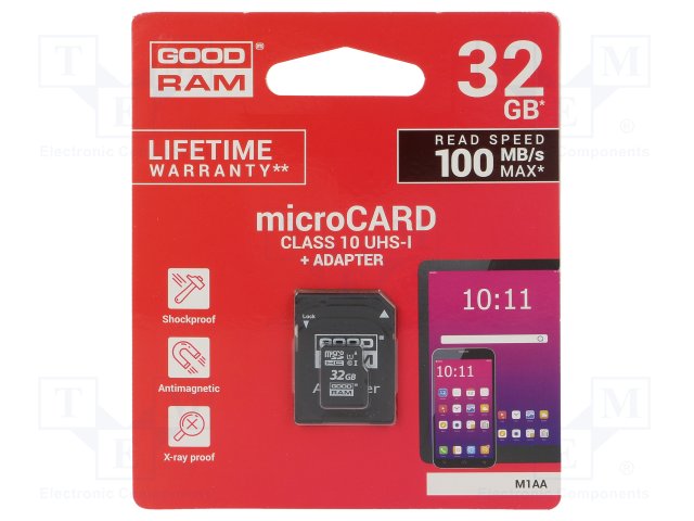 Карта памяти; SD HC Micro; 32ГБ; Считывание: 100МБ/с; UHS I