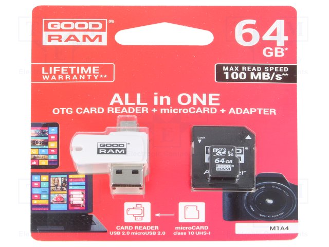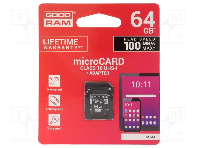 Карта памяти; SD XC Micro; 64ГБ; Считывание: 100МБ/с; UHS I