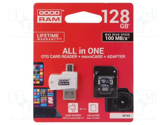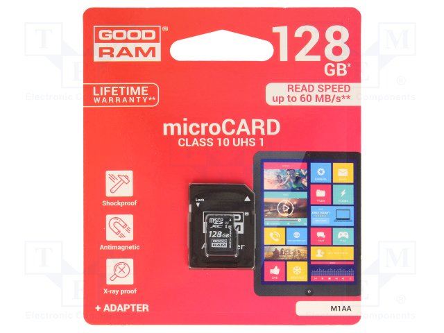 Карта памяти; SD XC Micro; 128ГБ; Считывание: 60МБ/с; UHS I