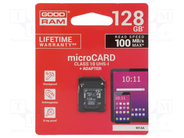 Карта памяти; SD XC Micro; 128ГБ; Считывание: 100МБ/с; UHS I