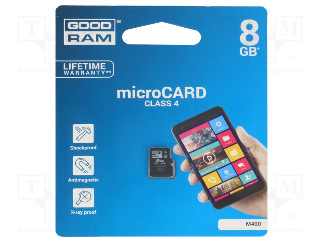 Карта памяти; SD HC Micro; 8ГБ; Считывание: 15МБ/с; Запись: 4МБ/с