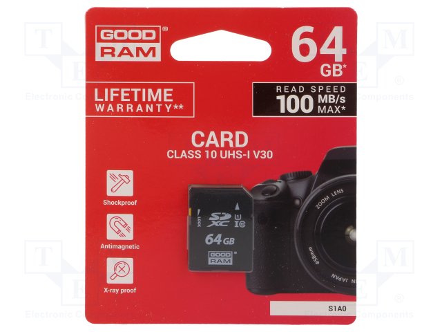 Карта памяти; SD XC; 64ГБ; Считывание: 100МБ/с; Запись: 10МБ/с