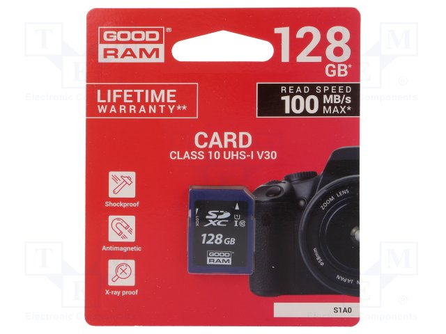 Карта памяти; SD XC; 128ГБ; Считывание: 100МБ/с; Запись: 10МБ/с