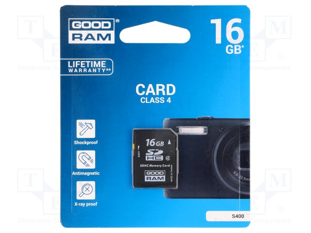 Карта памяти; SD HC; 16ГБ; Считывание: 15МБ/с; Запись: 4МБ/с