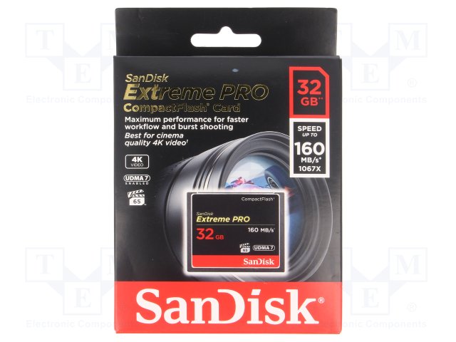 Карта памяти; Extreme Pro; Compact Flash; 32ГБ; Запись: 150МБ/с
