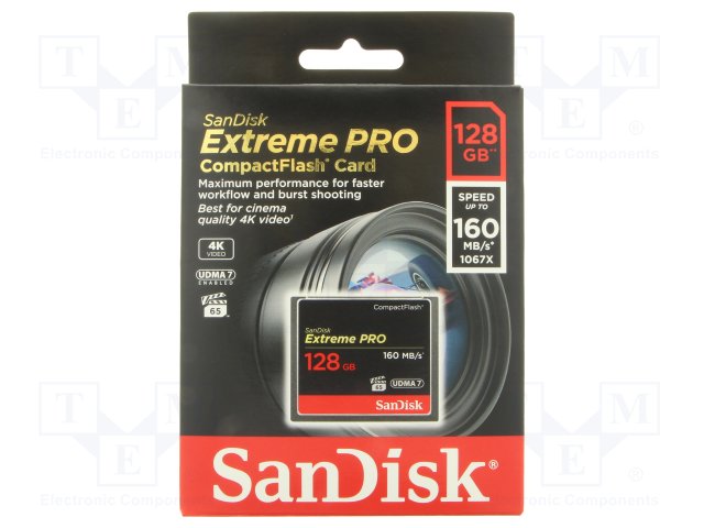 Карта памяти; Extreme Pro; Compact Flash; 128ГБ; Запись: 150МБ/с