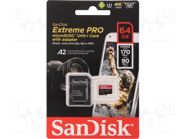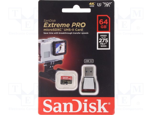 Карта памяти; Extreme Pro; SD XC Micro; 64ГБ; Считывание: 275МБ/с