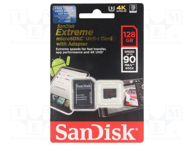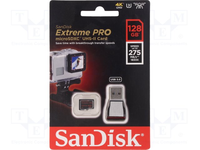 Карта памяти; Extreme Pro; SD XC Micro; 128ГБ; Запись: 100МБ/с