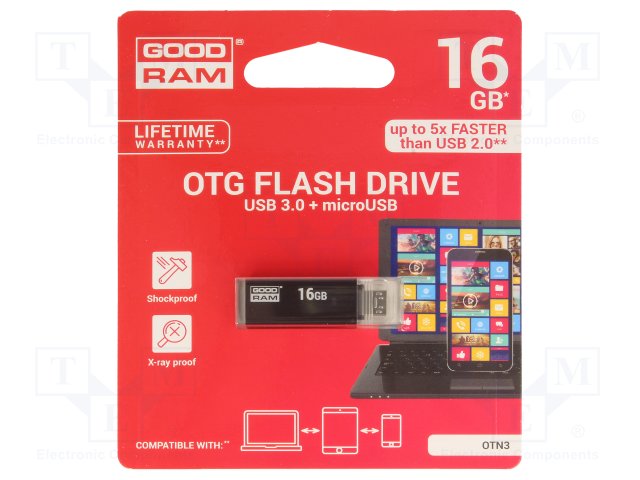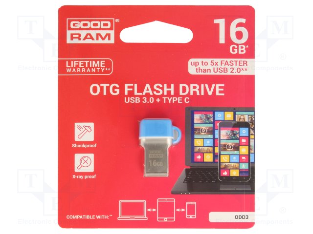 Флешка; OTG,USB 3.0; 16ГБ; Считывание: 120МБ/с; Запись: 10МБ/с |