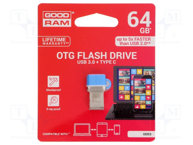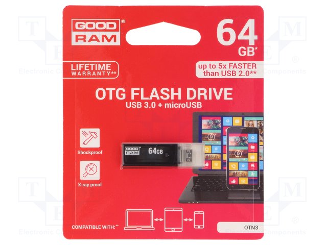 Флешка; OTG,USB 3.0; 64ГБ; Считывание: 120МБ/с; Запись: 10МБ/с |