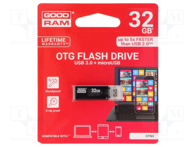 Флешка; OTG,USB 3.0; 32ГБ; Считывание: 120МБ/с; Запись: 10МБ/с |