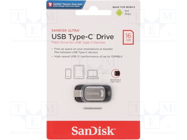 Флешка; USB 3.1; ULTRA; 16ГБ; 130МБ/с; USB C |