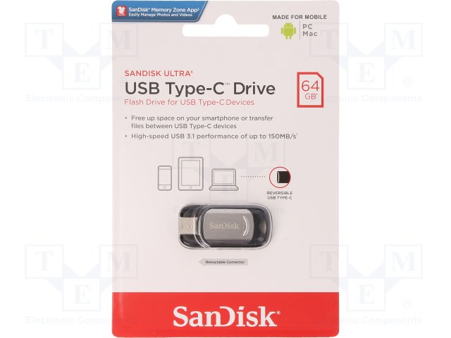 Флешка; USB 3.1; ULTRA; 64ГБ; 130МБ/с; USB C |