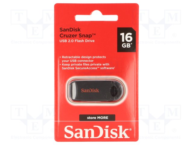 Флешка; USB 2.0; CRUZER SNAP; 16ГБ; Цвет: черный; USB A |