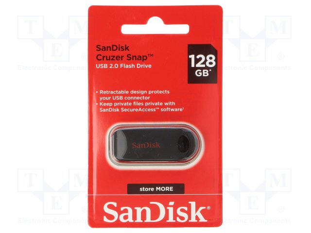 Флешка; USB 2.0; CRUZER SNAP; 128ГБ; Цвет: черный; USB A |