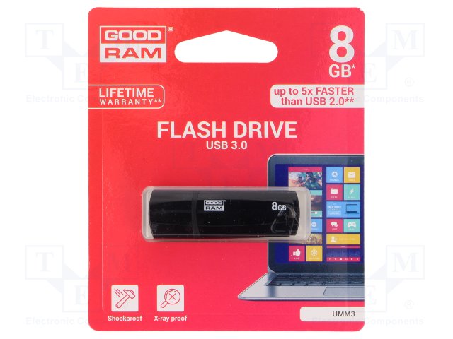 Флешка; USB 3.0; 8ГБ; Считывание: 60МБ/с; Цвет: черный |