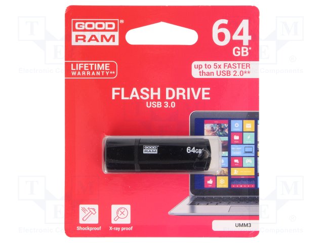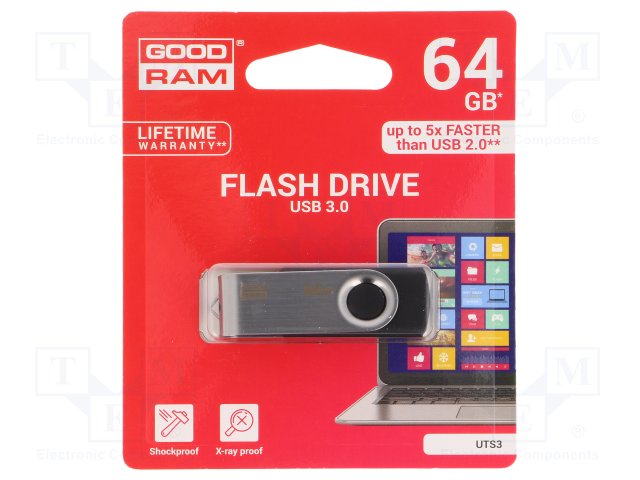 Флешка; USB 3.0; 64ГБ; Считывание: 60МБ/с; Цвет: черный |