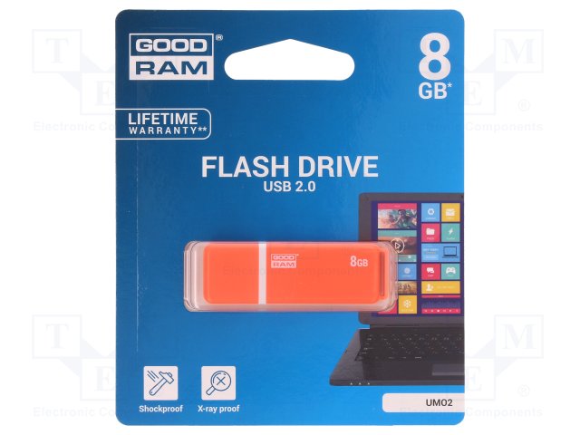 Флешка; USB 2.0; 8ГБ; Считывание: 20МБ/с; Запись: 5МБ/с |