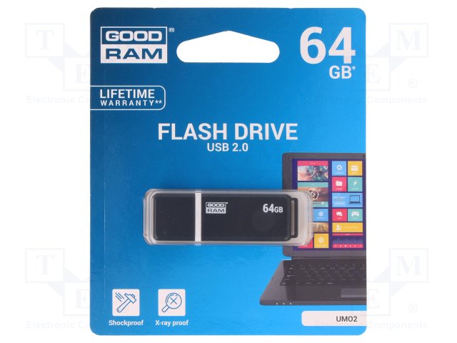 Флешка; USB 2.0; 64ГБ; Считывание: 20МБ/с; Цвет: черный |