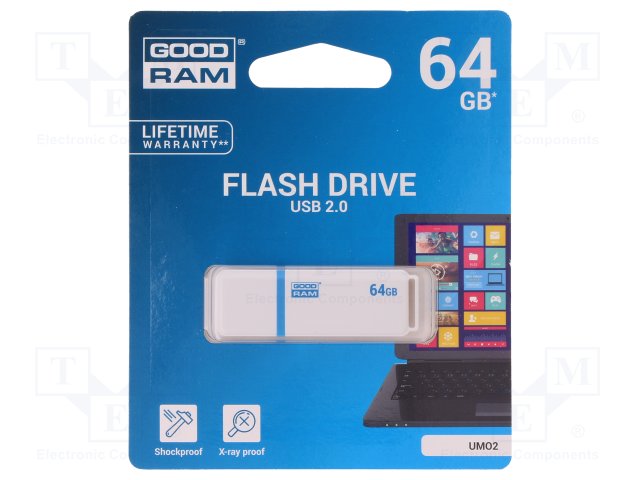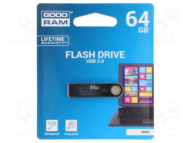 Флешка; USB 2.0; 64ГБ; Считывание: 20МБ/с; Запись: 5МБ/с |