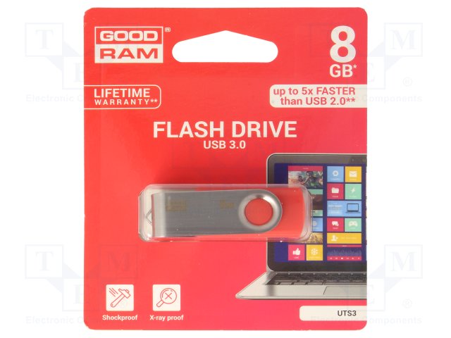 Флешка; USB 3.0; 8ГБ; Считывание: 110МБ/с; Цвет: красный |