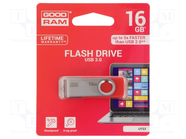 Флешка; USB 3.0; 16ГБ; Считывание: 110МБ/с; Цвет: красный |