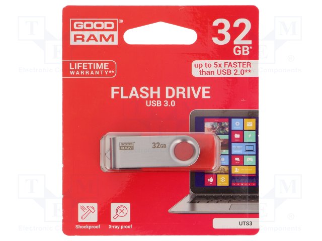 Флешка; USB 3.0; 32ГБ; Считывание: 110МБ/с; Цвет: красный |