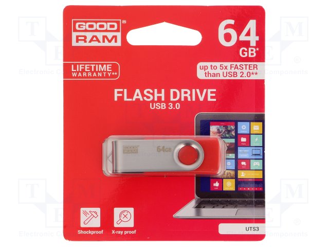 Флешка; USB 3.0; 64ГБ; Считывание: 110МБ/с; Цвет: красный |