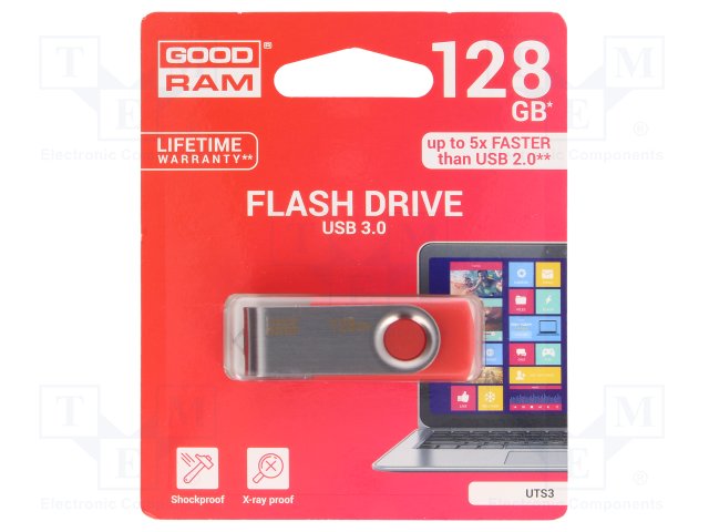 Флешка; USB 3.0; 128ГБ; Считывание: 110МБ/с; Цвет: красный |