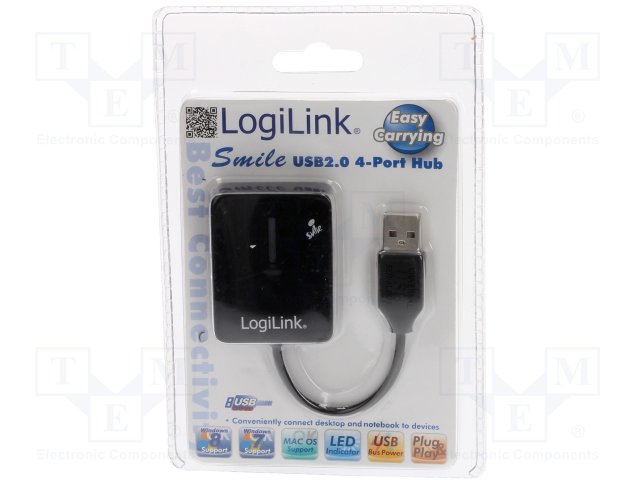 Hub USB; USB 2.0; PnP; Кол-во портов: 4; 480Мбит/с