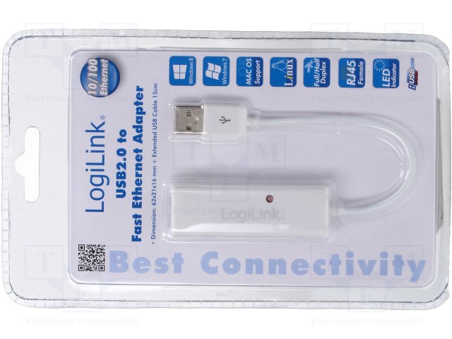 Адаптер USB / Fast Ethernet; USB 2.0; гнездо RJ45,вилка USB A