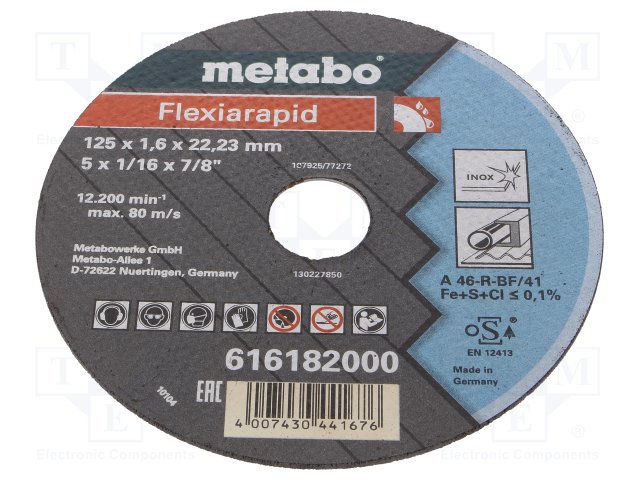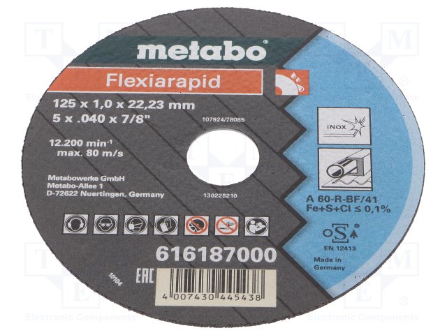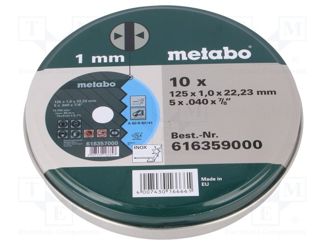 Диск отрезной; Ø: 125мм; Øотв: 22,2мм; Толщ.диска: 1,6мм |