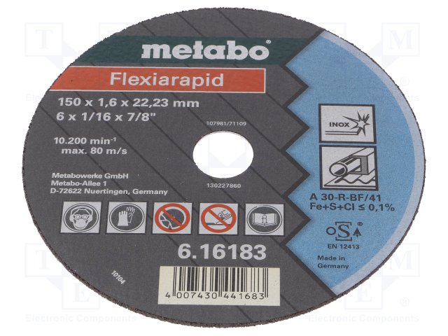 Диск отрезной; Ø: 150мм; Øотв: 22,2мм; Толщ.диска: 1,6мм |